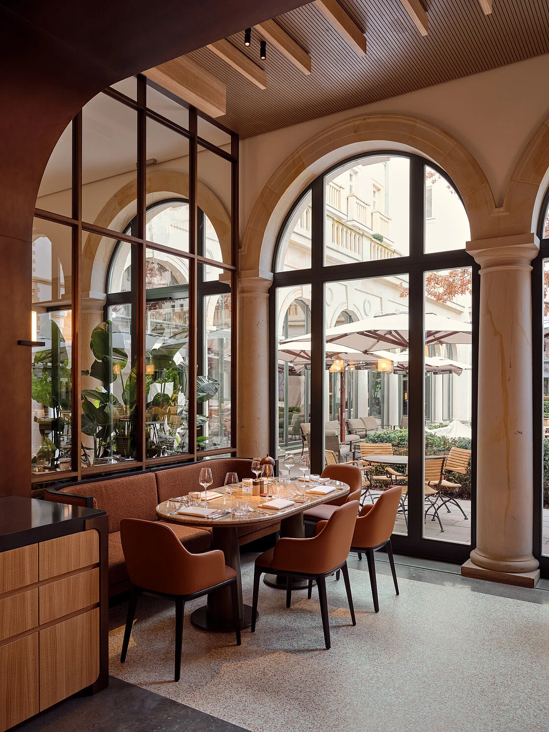Das Hotel beherbergt nach der Grundrissumstrukturierung neben den 147 Zimmern und Suiten entlang der Innenhof-Arkaden einen großen Ballsaal, zwei Restaurants, eine Bar sowie mehrere Konferenzräume. Der 600 m² große Wellness-Bereich mit Schwimmbad erstreckt sich über drei Etagen.